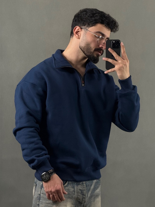 نیم زیپ بیسیک سه نخ سرمه ای