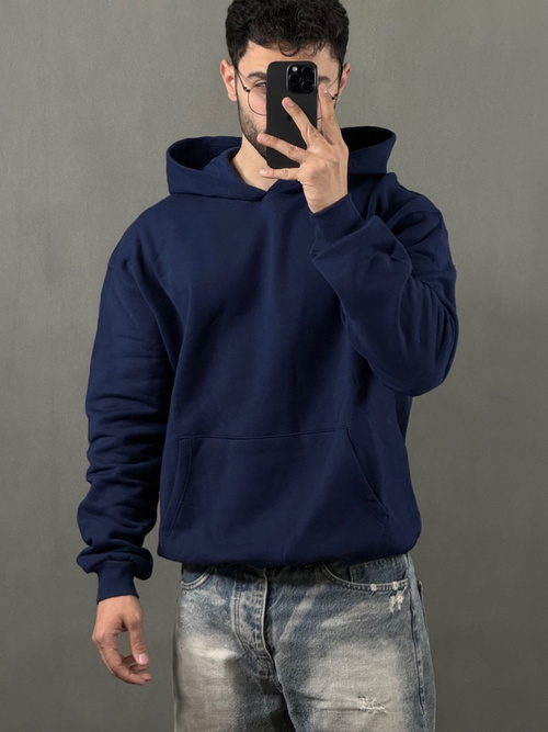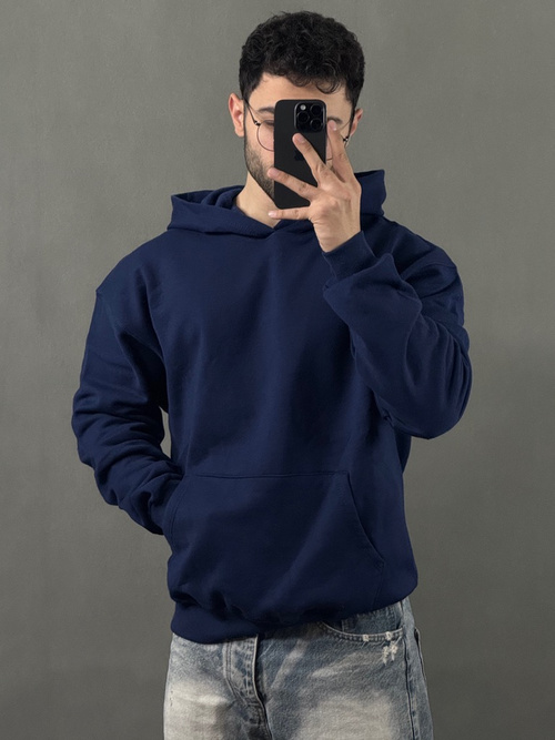 هودی ساده پنبه سرمه ای